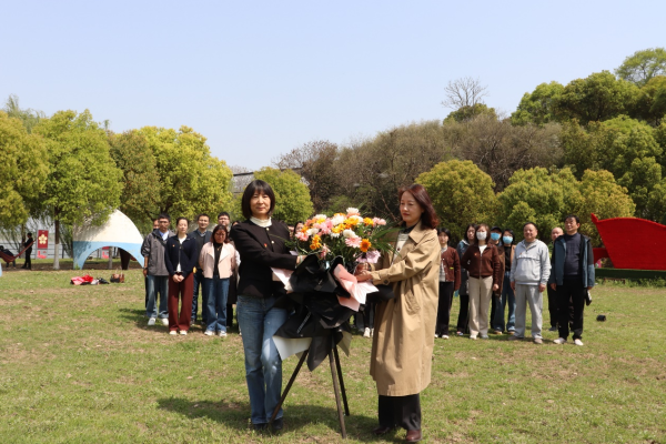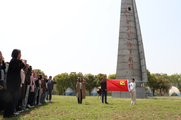 全体党员在基地广场举行庄严仪式。党委书记黄丽娟领誓,全体党员面向党旗高举右拳,以铿锵誓言重忆入党初心;随后,党委书记黄丽娟和纪委书记翟凌代表全体党员向革命烈士纪念碑敬献花篮、鞠躬默哀,追思先烈丰功伟绩。